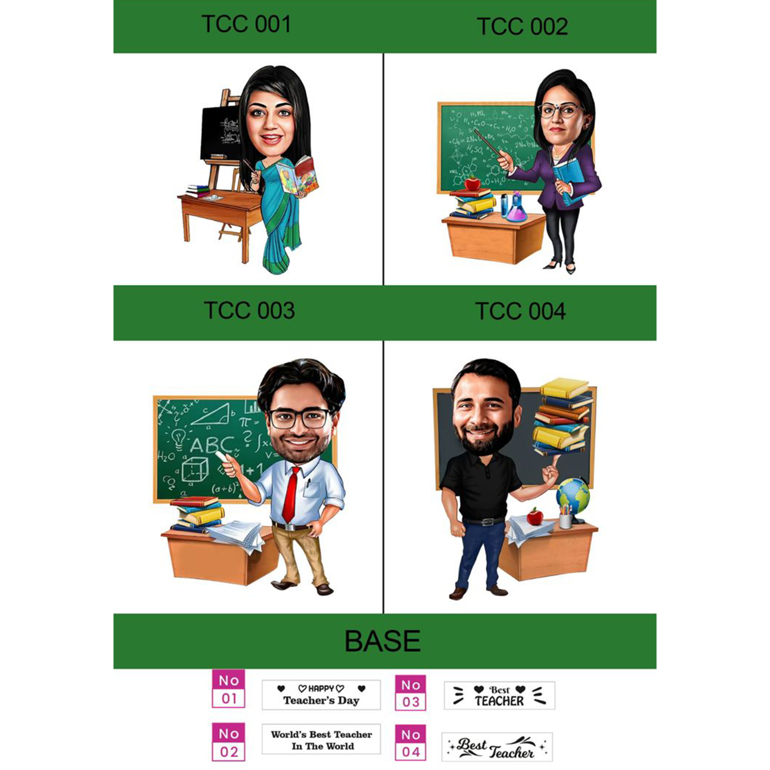 Make Teacher’s Day unforgettable with the Caricature Table Top 1.0, fully customizable with your favorite image. Choose from 4 base designs and create a fun, personalized keepsake that teachers will love to display on their desk. Perfect for gifting and showing appreciation in a creative way!